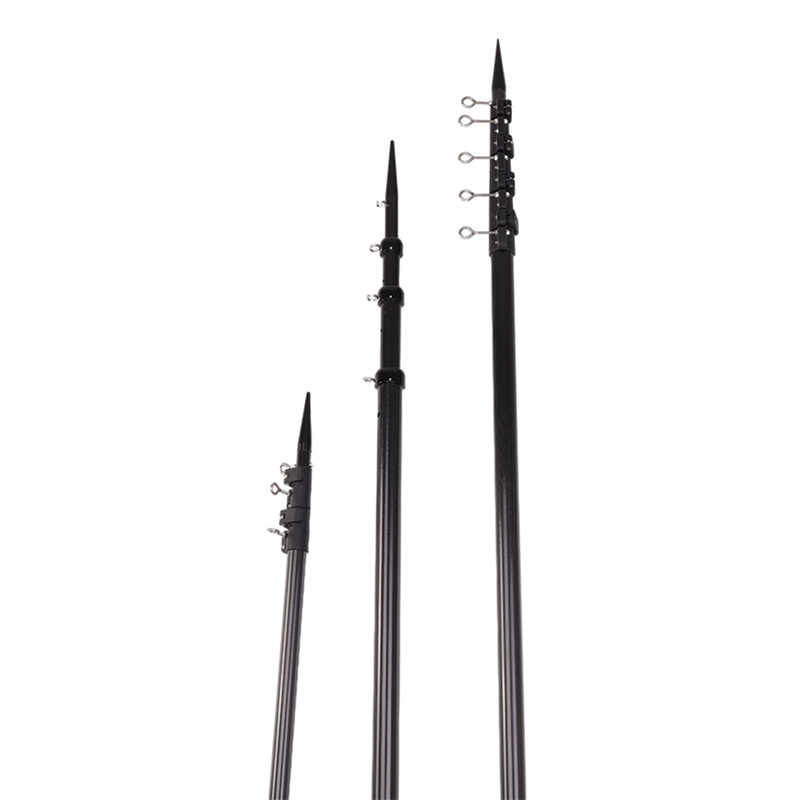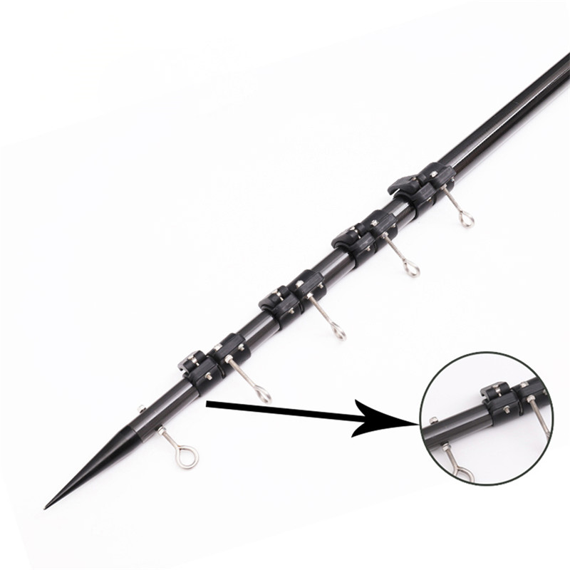 | Ventaja | 1. Construcción de postes 100% de fibra de carbono. 2. Capa transparente resistente a los rayos UV 3. Anillos de acero inoxidable tipo 316 4. El diseño de la abrazadera permite una acción de natación más natural que resulta en enganchar más peces 5. La longitud de extensión es de 24 pies y la longitud de contracción es de 1,8 m. 6. Telescopios a menos de 8' para espacio libre en puentes, remolque y almacenamiento 7. El diseño del collar de bloqueo evita que los postes se extiendan al remolcar o correr a toda velocidad y también evita que los postes colapsen cuando están completamente extendidos. |