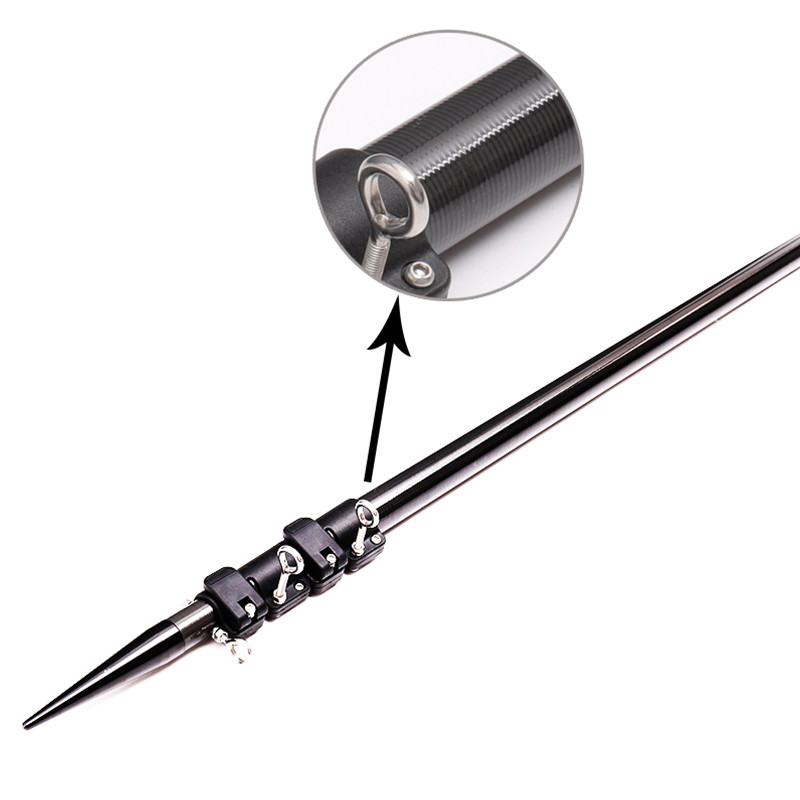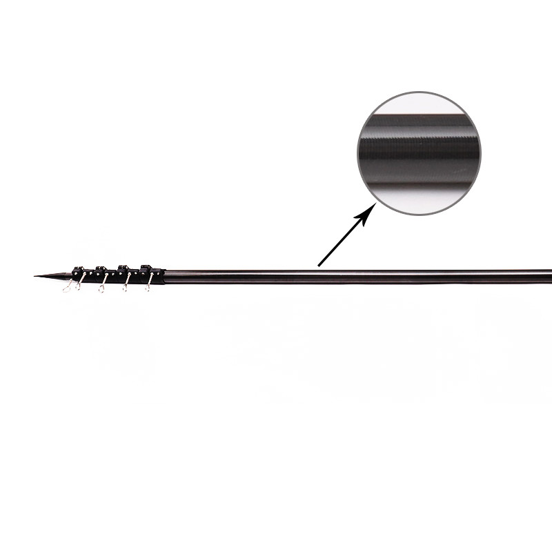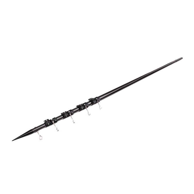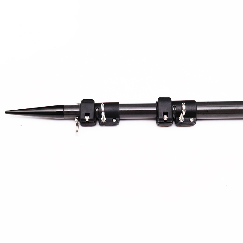 | Advantage | 1. 100% Carbon Fiber pole construction 2. UV-resistant clearcoat 3. Stainless Steel Type 316 rings 4. Clamp design allows for a more natural swimming action which results in hooking more fish 5. The extension length is 24ft and the contraction length is 1.8m 6. Telescopes to less than 8' for bridge clearance, trailering and storage 7. Locking collar design keeps poles from extending when trailering or running full speed and also keeps poles from collapsing when fully extended |